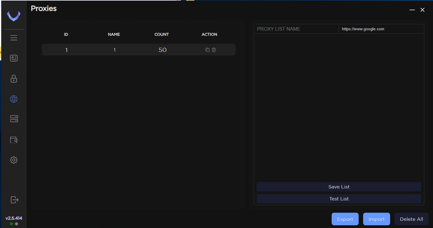 1. Enter proxies in format ip:port:login:password