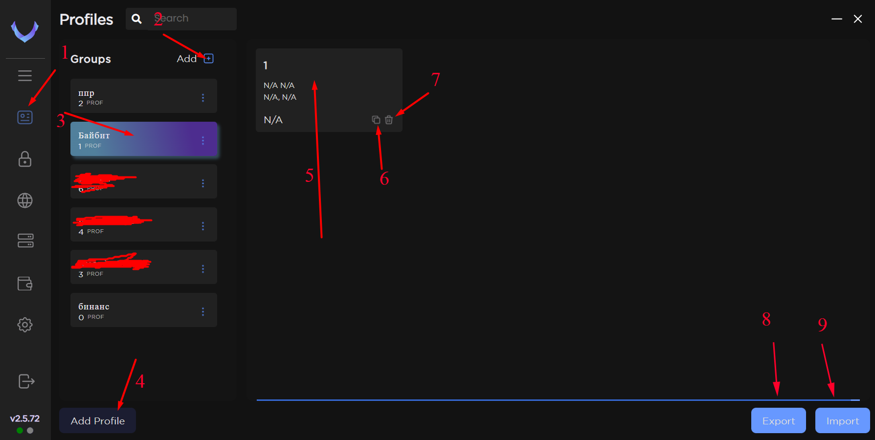 7 - Delete selected profile